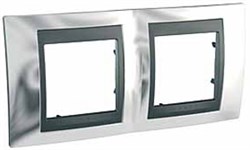 Рамка Schneider Electric UNICA TOP (хром глянцевый) двухместная с графитовой декоративной вставкой.