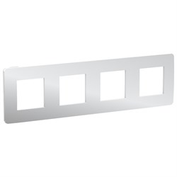 Рамка Schneider Electric UNICA STUDIO Metal (хром) четырёхместная с задней панелью цвета белый.